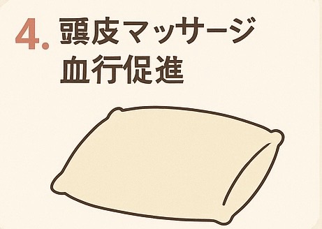 寝る前に軽く頭皮マッサージをすることで、血行が促進され、健康な髪の育成をサポートします。指の腹を使って、円を描くようにやさしくマッサージしましょう。市販の頭皮マッサージブラシを使うのも効果的です。