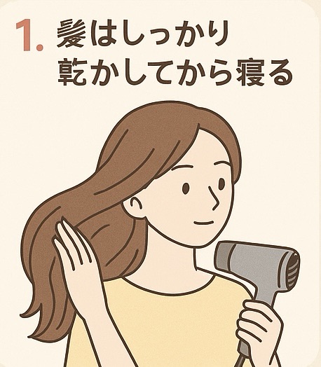 寝る前のヘアケアは、健康で美しい髪を保つために欠かせない習慣です。「乾かす」「保湿する」「摩擦を防ぐ」「血行を促す」「環境を整える」といった基本を丁寧に行うことで、髪のダメージを最小限に抑えられます。毎日の積み重ねが未来の髪を変えると考え、今夜からぜひ意識してみましょう。